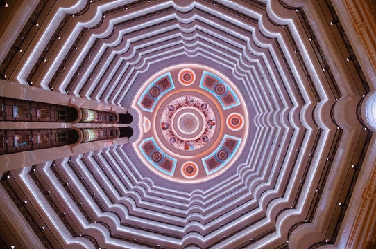 整个酒店呈圆形分布,虽然修建时间挺久了,但现在看来也不失壮观。妈妈还拿出手机查了一下价格,也许是受疫情影响,这家酒店居然还有两三百的房间。