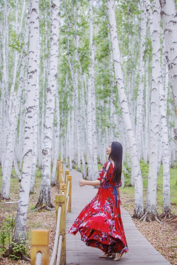 白色树干和碧绿的树叶最搭配,林子的负氧离子含量高,在这里可以大口呼吸吸氧。