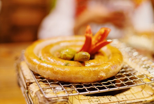 盘肠肉质鲜美和秘制的酸黄瓜简直就是绝配。