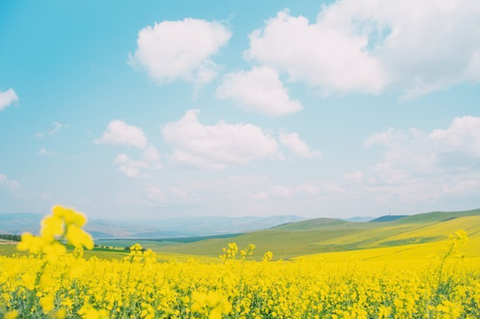 穿越了大草原,车子驶入了高速公路,路两边的油菜花开的正好,金黄色的连绵不断,爸爸说在这样的路上开车心情都会舒畅很多。