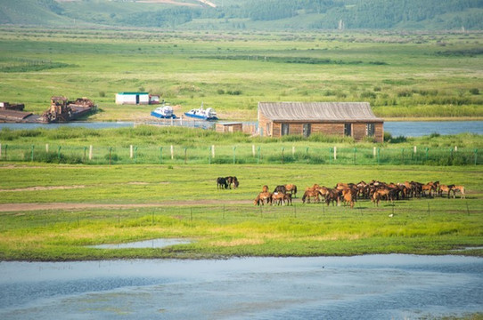 呼伦贝尔 环线还能到达 俄罗斯 边境, 中国 和 俄罗斯 就隔着一条界河,在这边就能看到对面的 俄罗斯 小村庄。
