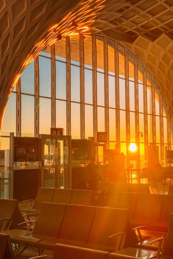来到登机口的时候,正值夕阳最美的时刻,那光如此温暖地射入我的心田……