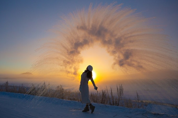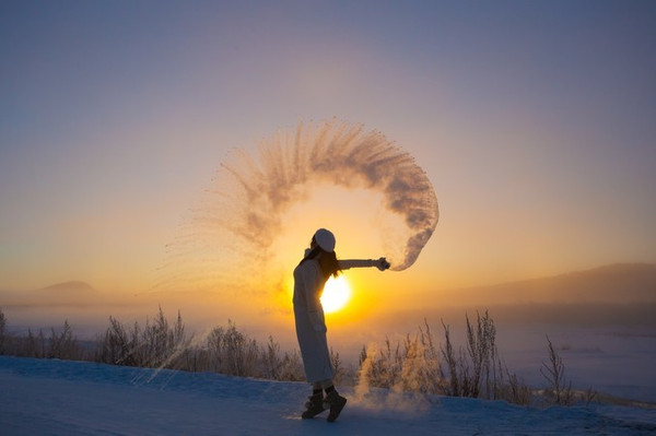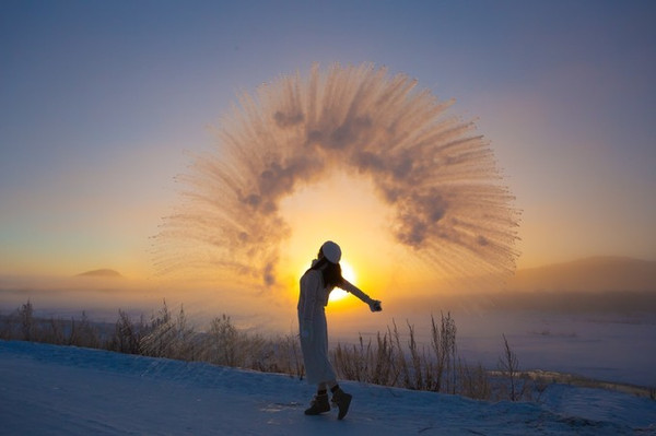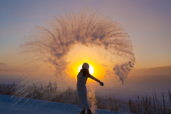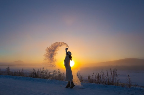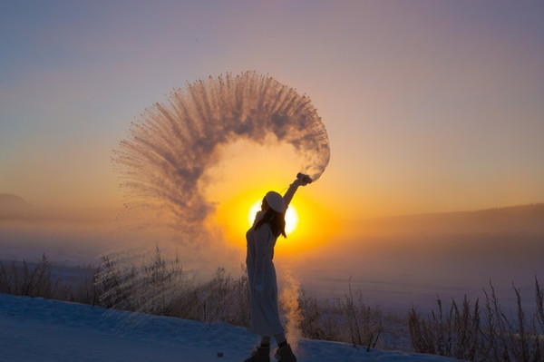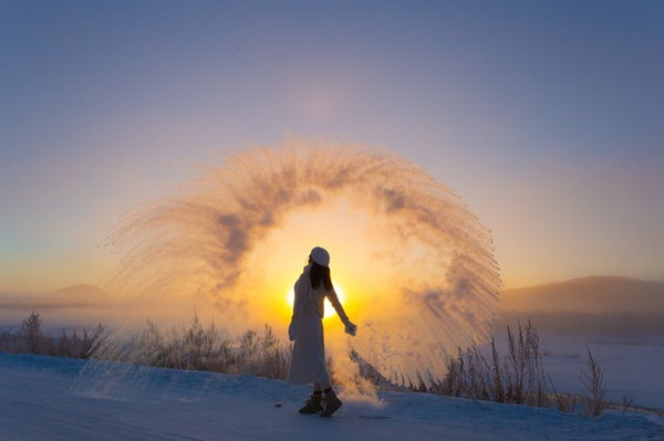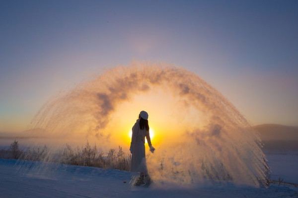 ——在这里,有一种奇遇,叫日出下的泼水成冰~