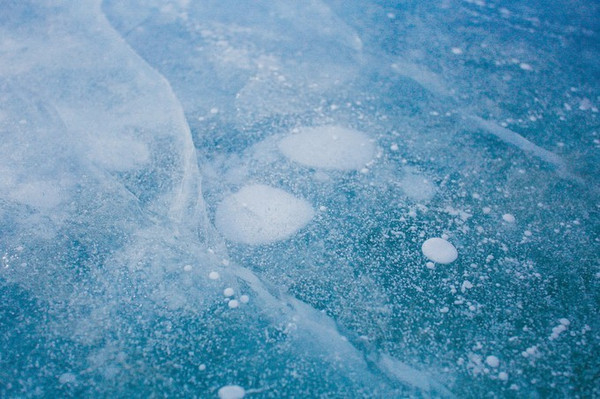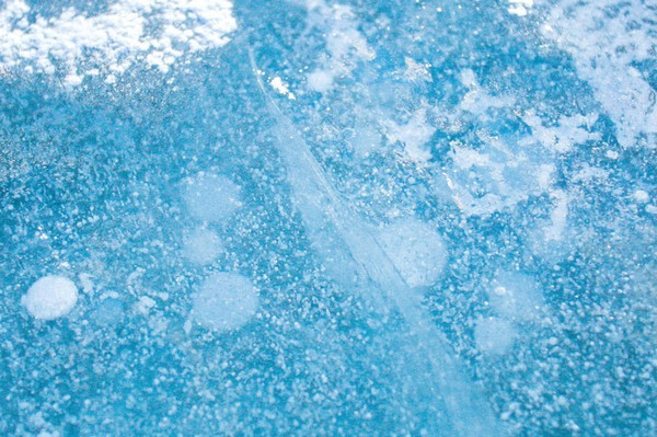 冰层下面的气泡冰犹如梦幻的雪球,好像下雪一样。这些气泡是由于湖水中的植物释放出来的甲烷,而因寒冷的气候,还没来得及消散就很快的被冰封,所以这些气泡也因此被“锁”在冰层下,形成了犹如冰层下雪的奇观。