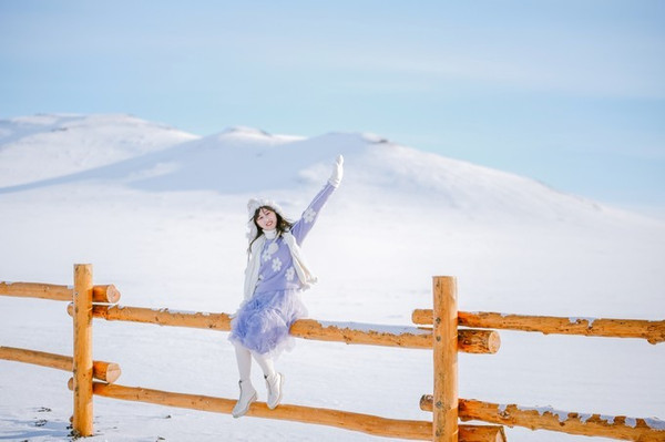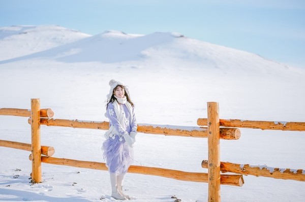 而冬天的大草原,又是一副截然不同的景象,处处是高高的山坡,脚下软软的草地在大雪过后,已经被白雪覆盖,看上去十分唯美!