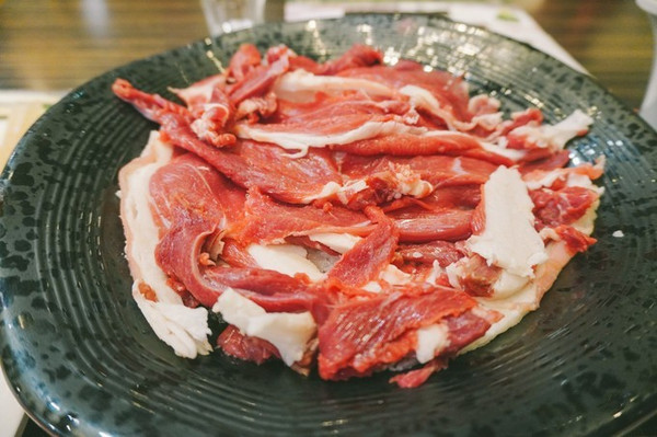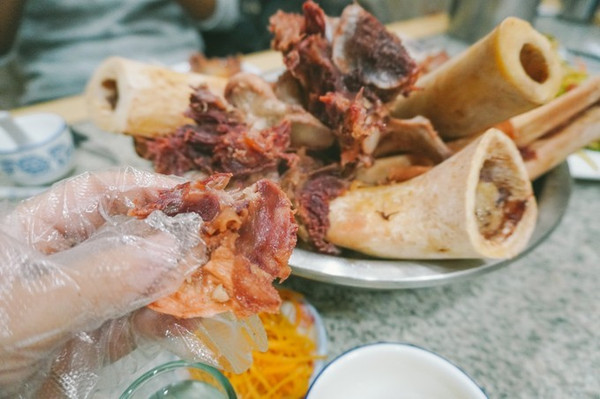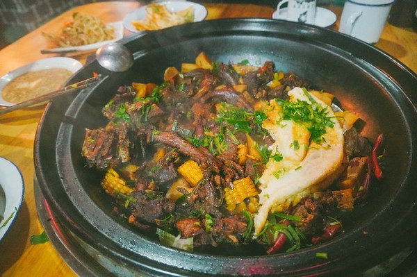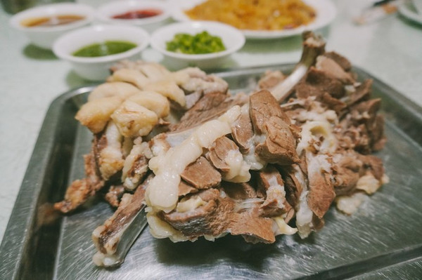 在 呼伦贝尔 吃羊肉,是自己拿着小刀一边切一边划拉一边吃的,十分带感!同时可以自选4种蘸料,韭菜花、腐乳等等,可带劲了~