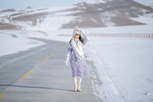 漫天皆白,白中透着蔚蓝,分不清哪是湖,哪是天,望不到天际,看不到湖边,天和湖已经融为一体。