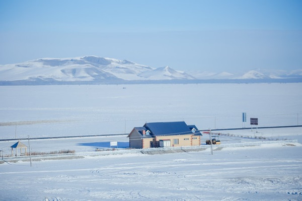 呼伦湖湖面冰封从十一月开始,冰冻由湖岸开始向湖心延伸,速度很快,几天时间便可封湖。