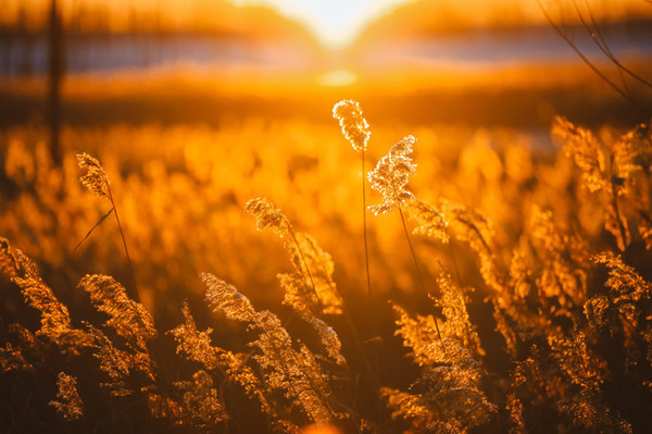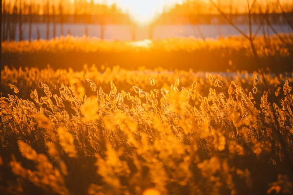 夕阳金黄色的余晕藏在远处的一片白桦林后边,美极了~