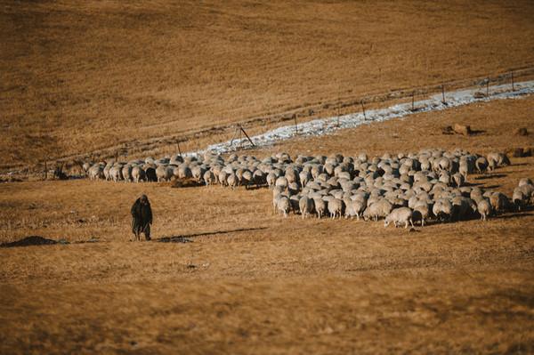 草原是静谧的,也是喧嚣的,沿途偶遇了一个羊群,它们的叫声构成了一曲草原上的和弦。