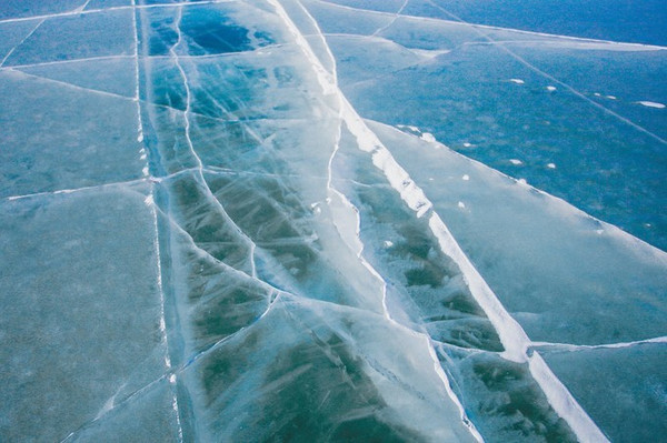 不可思议的是,呼伦湖的冰在阳光下呈蔚蓝色,在这些冰河下面,还隐藏着“气泡冰”奇观,这种气泡冰的形成必须要在十分寒冷的情况下,才会出现,而且很难找到,必须要借助热水将冰面上附着的冰雪融化,才看得见冰层下面的气泡冰。