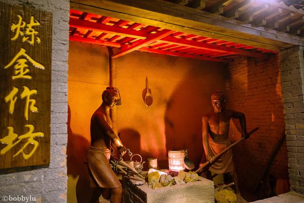 据说虎山的这条主金矿洞,矿脉可达1000余米之长,矿洞深度我不得而知,但长度也有近500米之多。在矿洞内部昏暗的灯光下,偶尔可见古人淘金及采挖的雕塑。其间还路遇有矿道的分支,但似乎越往里走,压力越大,时而感觉到眼睛和头部有明显的挤压感。可见古人采挖金矿是何其的困难。但自古,人们对于黄金的追逐,以及黄金本身的价值乃至今日都是硬通货,所以,这点困难在黄金前,真的就算不得什么了!