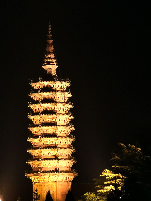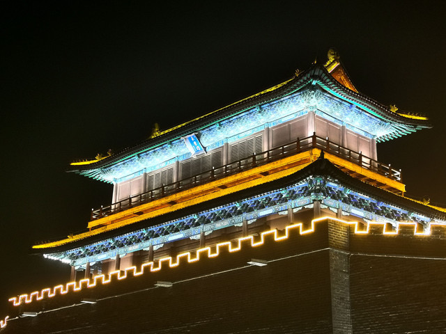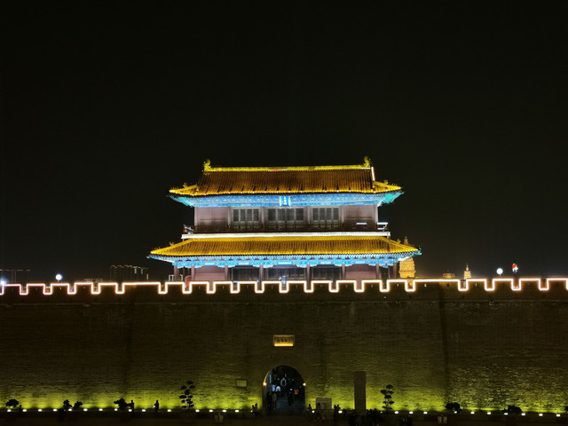 正定城夜晚灯火通明,灯光勾勒出了城墙的轮廓,城内四座塔格外亮眼,是古城内的标志性景观。