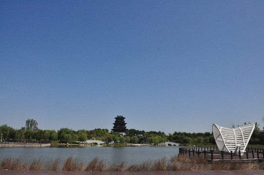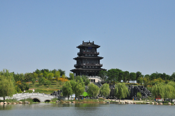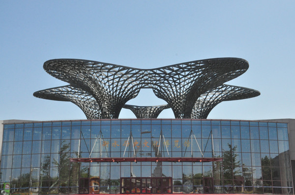 林林总总的园博园景区的确面积超大,看点颇多,但是如今让人感觉像 已被废弃的景点。景区门口已是门前冷落车马稀,几乎看不到一个游客。进入景区,正对大门的主场馆,非常恢弘大气,现在是衡水历史文化博览馆,本来打算参观一下,因为衡水市没有一个综合性的博物馆可看。但是进入场馆,却被告知闭馆整修,不对外开放。只得作罢。