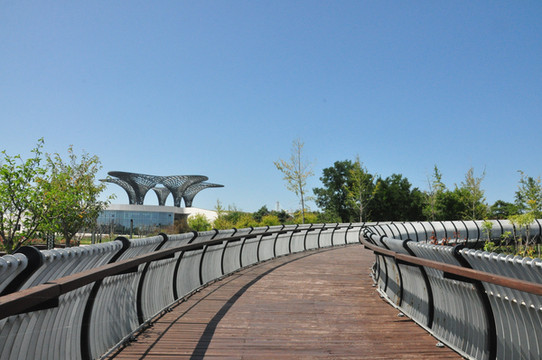让人不可思议的是,步行到其他场馆园区,并非如售票员所说,部分场馆不予开放,而是所有场馆都已荒废遗弃,真是作孽呀,这么多的建筑,仅仅两三年就这样白白作古,太令人感觉浪费,这么好的资源。我们只好沿着马路看看外景,聊博兴味。