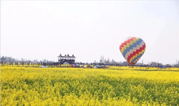 万亩油菜花基地附近,花千谷悠然伫立。