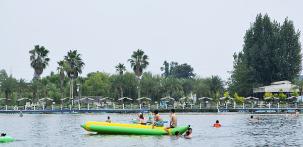 现在,和海园区正在进行"傣迪银滩泼水季”活动,傣族姑娘从云南千里迢迢来到四川德阳,与我们一起在夏日狂欢。