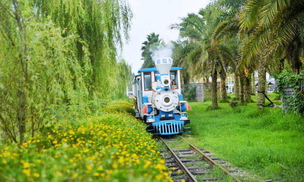 进入和海园区右手边,就是“火车站”,这可以说是河海园区的良心项目了,乘坐小蒸汽火车环游一圈可以将整个河海园区的风光尽收眼底:阳光、沙滩、海风、棕榈树等一网打尽……