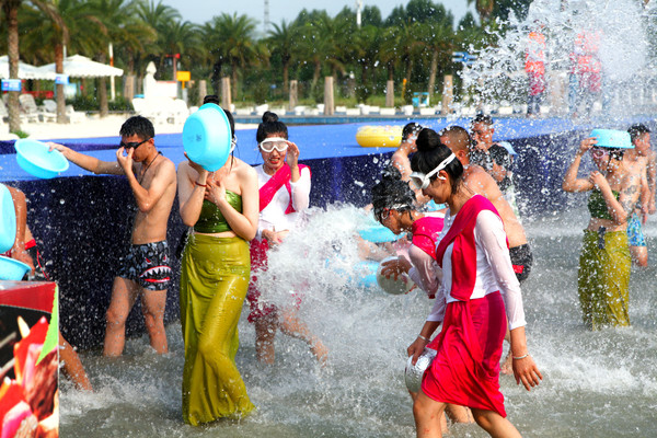 与美丽的傣族小姐姐一起戏水,湿身,尽情撒欢。泼水越多,幸福越美满,把西双版纳泼水节搬到和海园区,真是看到了德阳中国和海的诚意满满,这个活动会持续进行,直到这个夏天结束哦!