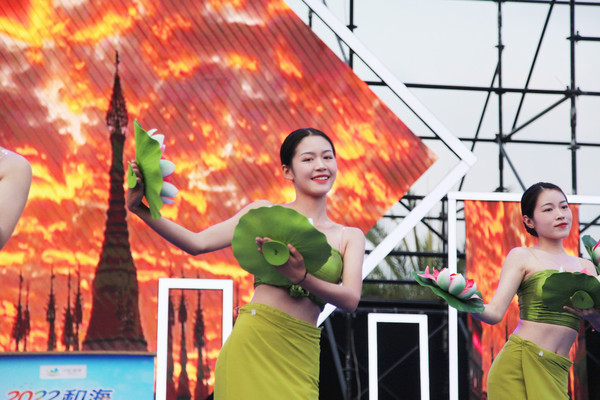 黄昏时分,表演开始了,傣族姑娘与美女DJ现场助阵,在主持人的鼓动下,她们会给现场的小伙伴们带来一场绝美的视听盛宴。