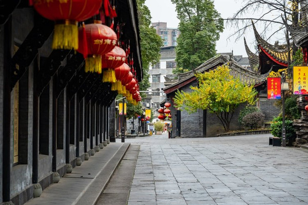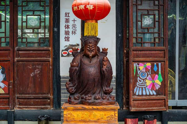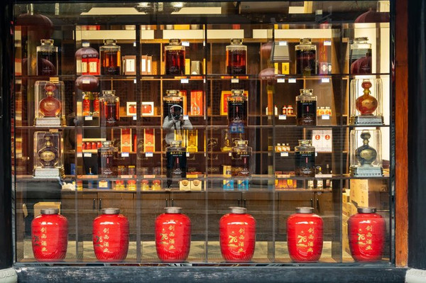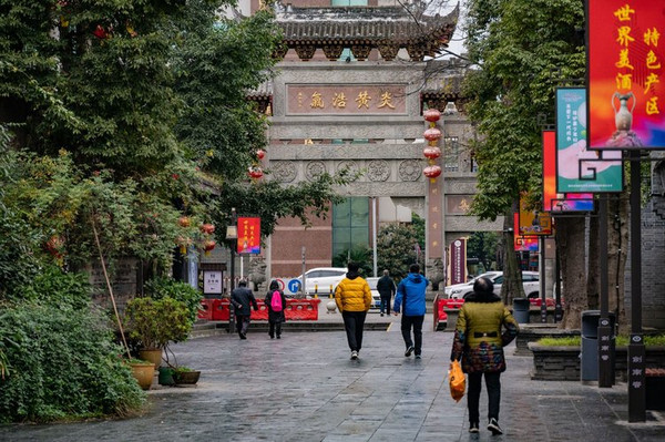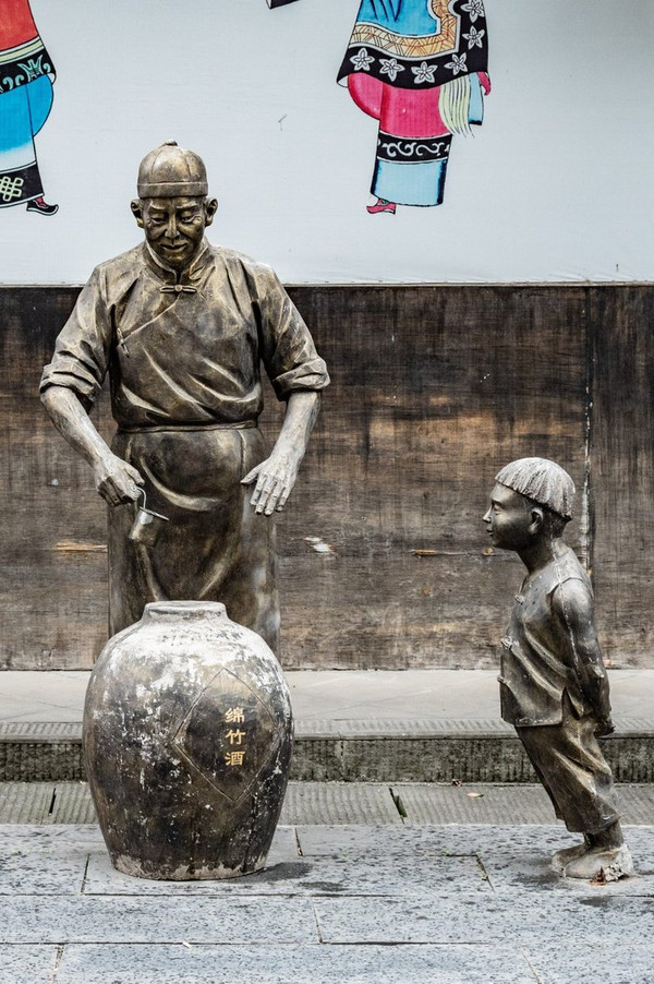 参观完绵竹年画村,听说绵竹还有一条有着1500余年历史的剑南老街,那势必也要去逛一逛。剑南老街不长,总长仅500余米,是一条完全按照明清风格设计的仿古老街。刚刚来到老街口,一股酒糟的香气就随着冬天的风扑面而来,显得格外暖。所以对剑南老街的第一印象,往往就是伴着酒香的嗅觉。