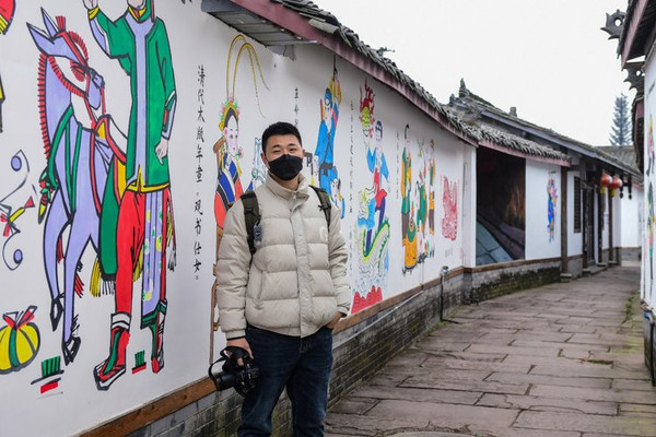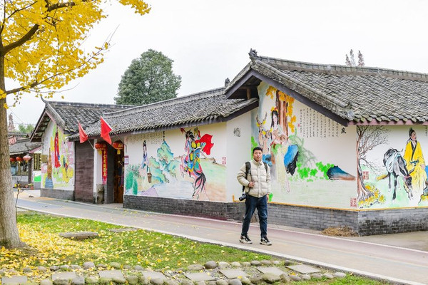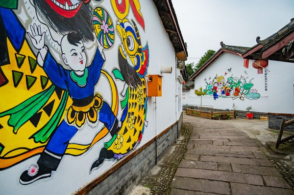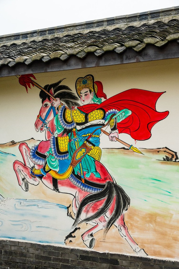 在年画展示馆内度过了愉快的2小时,然后又在年画村里转了一转,因为这是一座充满艺术的小村子。令我印象最深刻地是年画村里几乎家家户户的墙上和门上都画着绵竹年画,展现着绵竹人民积极生活的态度。要知道这里曾在“5.12”(汶川)大地震中被毁殆尽。