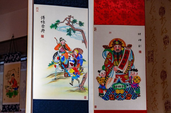 在这座展示馆里,也了解到了绵竹年画的制作。它们多以木版印出轮廓而后填色。绵竹年画与天津杨柳青年画、山东潍坊杨家埠木版年画、苏州桃花坞木版年画齐名为中国四大年画之一。2002年2月,绵竹年画入选首批中国非物质文化遗产项目。