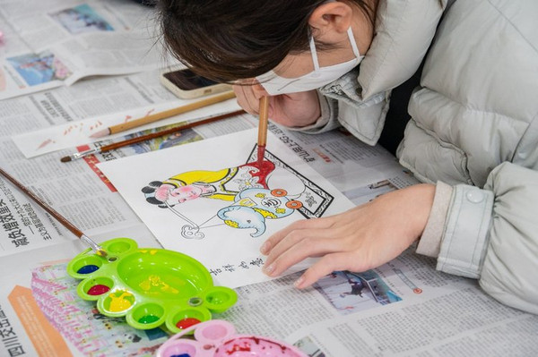 在绵竹年画展示馆,除了欣赏到琳琅满目的年画成品及周边,还在可以老师的指导下亲自去体验年画着色,十分有趣。我和小伙伴在老师的指导下,了解到了年画着色的一些顺序和技巧,然后就可以上手啦!毕竟我们只是进行着色这一个步骤,而且是非常简单的一幅小画,不一会儿就可以完成。看着老师点评自己的作品,十分有成就感。即便有很多瑕疵,但还是小心翼翼的收好,带回家做纪念啦!