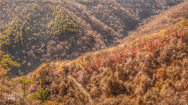 枫林谷的旅程是轻松惬意、美好浪漫的,我们从山巅走下来以后,沿着蜿蜒流淌的溪流而行,“几多幽意谷中藏,绿苔青草映红黄”的意境会显得更为惬意,那是秋天最后的美好。