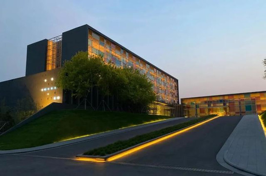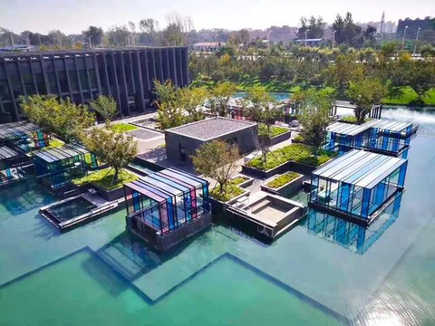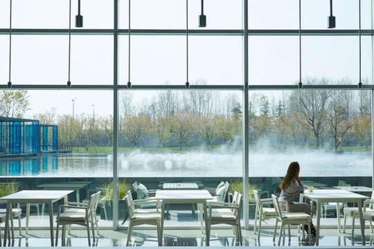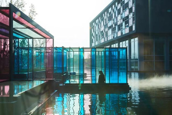 酒店主体由四座玲珑通透的全玻璃外墙建筑组成,将自然温泉的缭绕雾气结合光影变幻所带来的灵感融入创意设计为鄢陵打造一道别致的风景线。