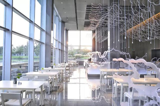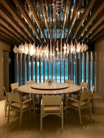 雾中花全日餐厅坐拥迷人湖景,其中的吊灯是将光从云背后投射的最好缩影,不经意的去曲线造型、晶莹剔透的质感以及伴随这一切产生的柔和光影,是自然的馈赠,亦是生活中最好的艺术载体。