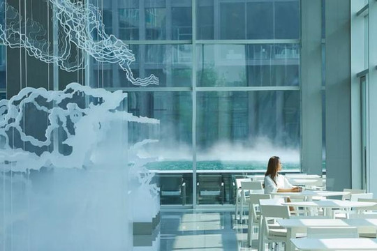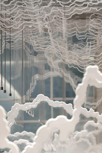 空间中满是以‘云’和‘光’为原型的装置创作,无论是为了营造极强的视觉冲击力,抑或是将艺术引入空间,都有着属于自然的独特味道。