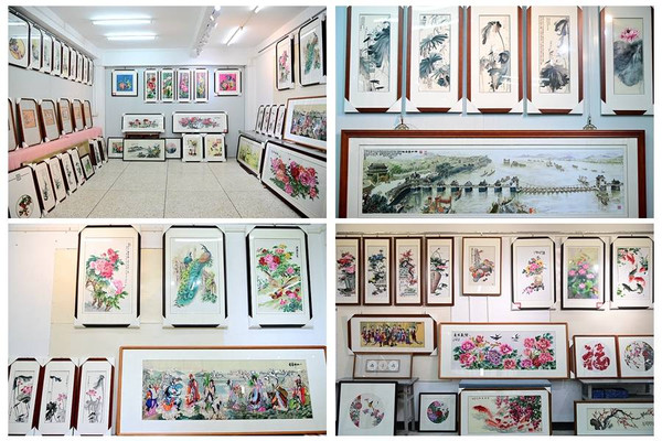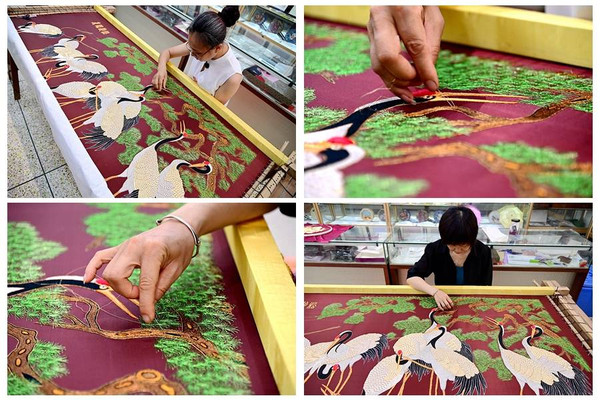 展馆中陈列着许多潮绣作品,如同一幅幅美丽的画作,或挥洒写意,或严谨工笔,美不胜收,凑近仔细看,才发现线条色彩都是用细细的丝线刺绣而成,令人赞叹不已。