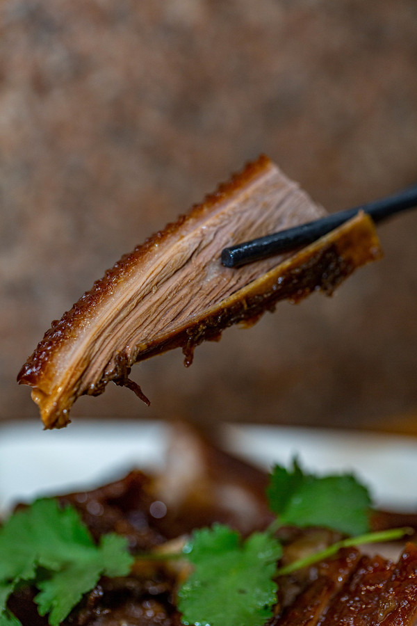 一家非常不起眼的小店,但每逢饭点便人山人海,门庭若市,究竟秘诀何在?原来溪口的鹅肉与别家的卤鹅风格不同,以蔗糖为代表的甜口鹅肉,主导着溪口的市场份额,难怪霆锋来潮州,都要亲自来打包。