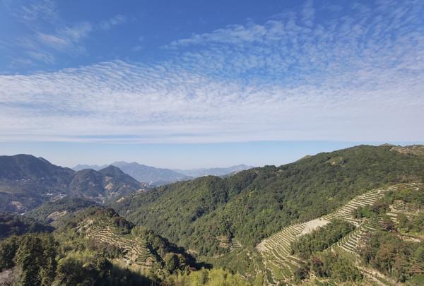 站在二木沁园,可俯瞰整个茶园,天蓝地绿,淡淡的茶香沁人心脾。