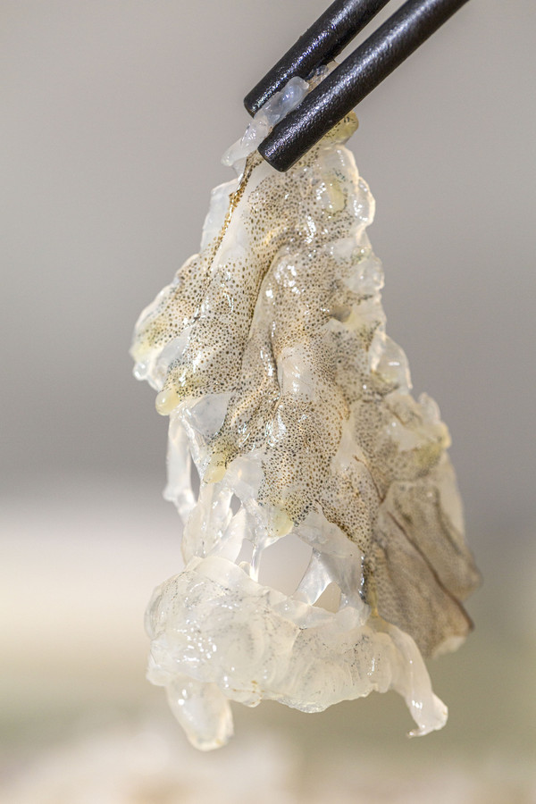 在潮州,无论春夏秋冬,鱼生都是受欢迎的,但对于外地人而言,更关心的是鱼生的卫生程度,这家炎记鱼生店虽小,却特别干净卫生。草鱼柳在师傅手里,只需几分钟,便拆骨起肉,手起刀落地片成透光的鱼生薄片,撒上芝麻提香,配上灵魂酱汁豆瓣炸蒜油,外加一份油甘子、洋葱丝、香菜等组成的配菜拌匀,鱼肉的鲜香扑鼻而来,爽实的口感令人无法自拔。