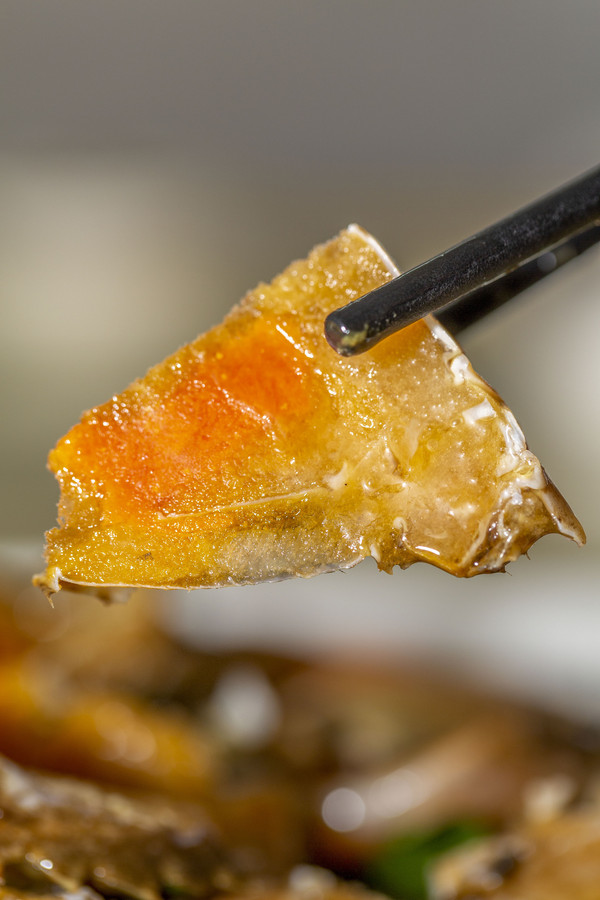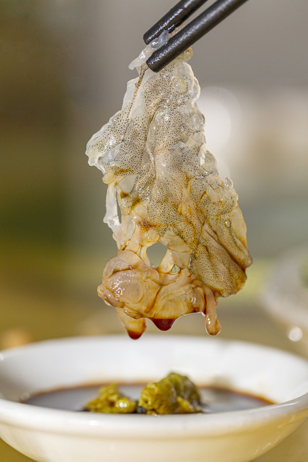 最后隆重登场的是咸膏蟹,也是我记忆深处最难以忘怀的味道,咸膏蟹柔滑如冰激凌,膏脂横溢色泽如咸蛋黄,多种料酒把它的香气逼出,一口就已相当惊艳!没错,它是我一秒就爱上的味道,那一抹冰凉柔滑的口感,值得我不远千里而来!