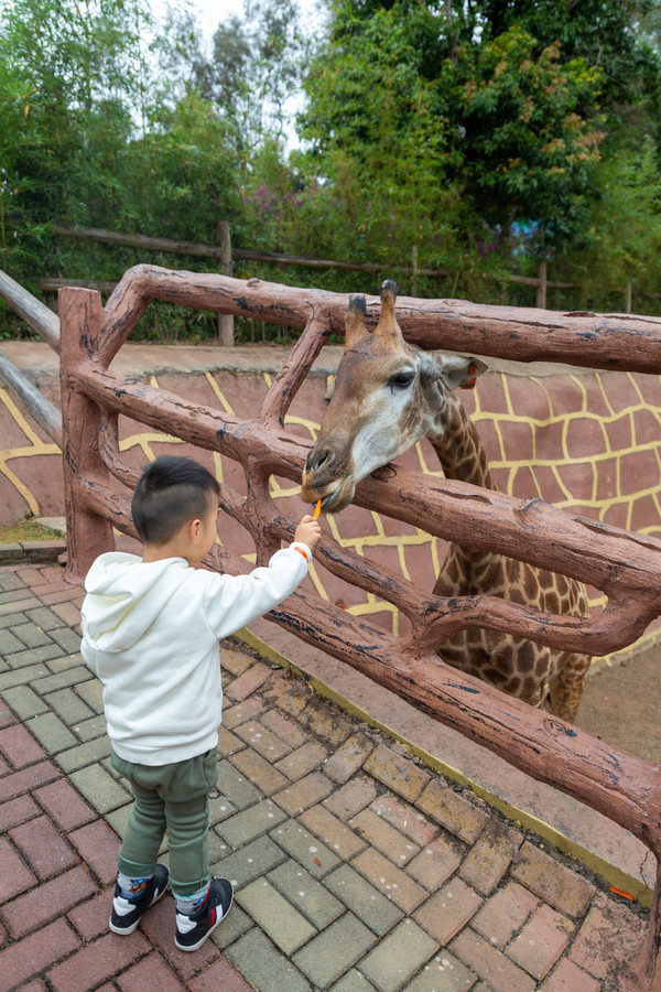 宝宝们天生喜欢亲近大自然,亲近小动物,在这里,可以喂喂长颈鹿,长颈鹿长得超可爱,长长的脖子,会在宝宝喂胡萝卜时弯下来;在天鹅湖投喂,可以看见傲娇的黑天鹅群汇聚在一起;心花鹿放投喂,则更贴近梅花鹿,宝宝手上的胡萝卜对它们有莫大的吸引力,拍照超美哒!