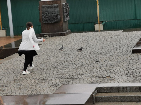我们进入市区时,游行已经结束了,第一感观是:这真是个年轻的城市,到处可见年轻的父母拖儿带女出行。三三两两的军舰就在旁边,年轻的男女海军说说笑笑,更是显得英气逼人。本来老婆和女儿就是想找个当地的大百货好好逛一下,才走了一会儿就停下来,坚决要找个海军帅哥拍几个相片。说来也奇怪,本来感觉海军都帅,想照相时她却挑了起来,这个不够高,那个长得不好看,那个不够阳光,那个走得太快跟不上——象花痴一样!她就在这片俄式风格浓郁的建筑群中移步换景,辗转前行,一时间竟有似水流年之感,不觉间已穿过古老的火车站到了胜利广场的塑像旁。在前面的红色贝蕾帽的队伍中发现几个帅哥,她马上象捕猎一样靠过去,征得同意后完成了心愿。
