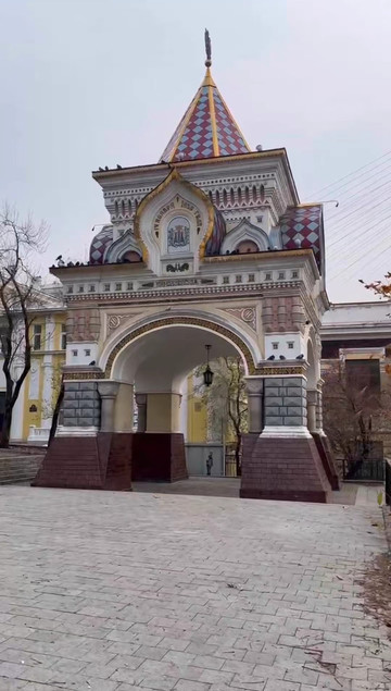 这是凯旋门。在海参崴东正教堂附近也能看到凯旋门的。这是亚历山大三世为了纪念父亲开疆拓土的韦功伟绩,而修建的。一座结合了俄罗斯风格特色的凯旋门。建筑不大,但造型精美,运气好还能看到成群结队的鸽子停留在凯旋门上。