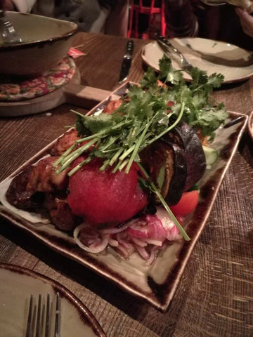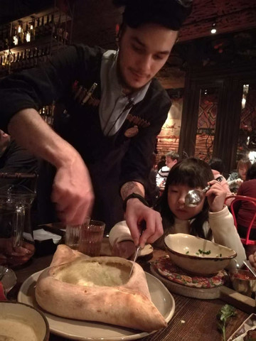 看完一场精彩的海洋表演之后,当然是要去当地的网红餐厅吃饭了,网上搜了一家评分挺高的餐厅“Supra”,开启一场美食盛宴。虽然是在俄罗斯,但是我们吃的却是一家格鲁吉亚菜,当然,后面就是因为吃过这餐才会想到要去格鲁吉亚那边旅游的^_^,菜品分量还挺多的,中间会有这些帅帅的服务生跳舞,也算是一场不错的视觉盛宴O(∩_∩)O哈哈~ 记得哦,俄罗斯是要支付小费的哦,帅哥看着帅你可以选择多给点,O(∩_∩)O哈哈~(P.S.很多人慕名而来,所以记得提前拿号,我们也是等了一个小时)