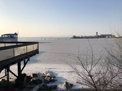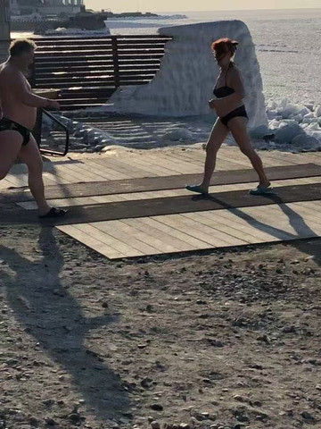 整个大海都变成冰面,战斗民族真不是盖的,零下15度赤条条地冲出去,难道真的会长命百岁?