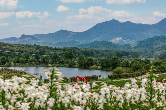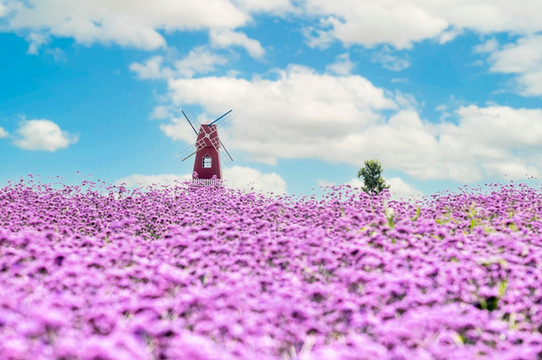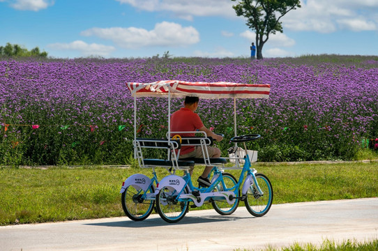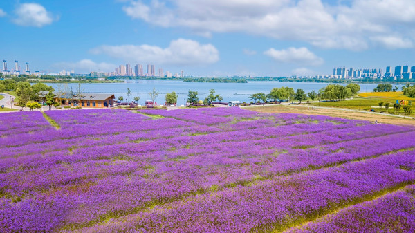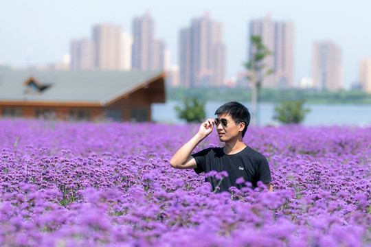 荷花、马鞭草、向日葵花、百日草、金鸡菊、波斯菊竞相绽放。马鞭草的最早可以从六月开始,一直延续到八月,成片的紫色马鞭草蔚然成海,号称 铜陵 的东方 普罗旺斯 ,