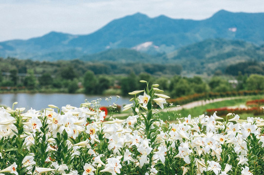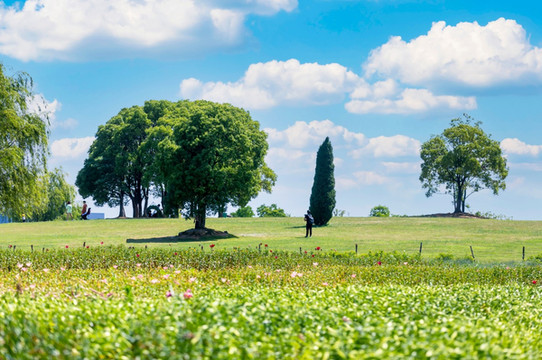 七彩花田、玫瑰岛、梅园、牡丹园里四季花海次第开放:3月主打:梅花、油菜花;4月主打:牡丹、芍药、杜鹃、桃花、郁金香;5月主打:百合、玫瑰、金鱼草。