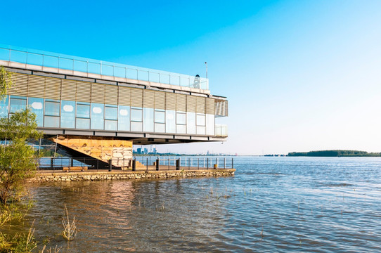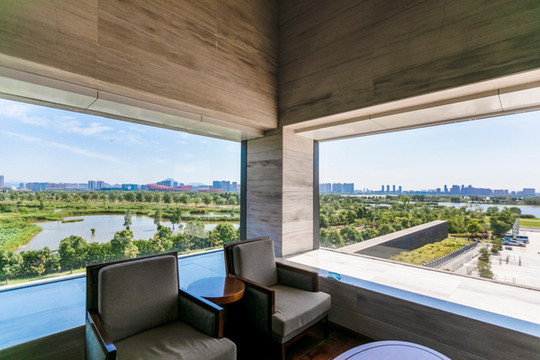 三楼有一处全景阅读空间,可以远眺整个西湖湿地公园的全景。