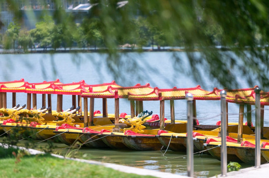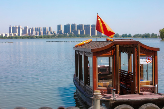 坐上游船泛舟湖上,欣赏 铜陵 的湖光山色。