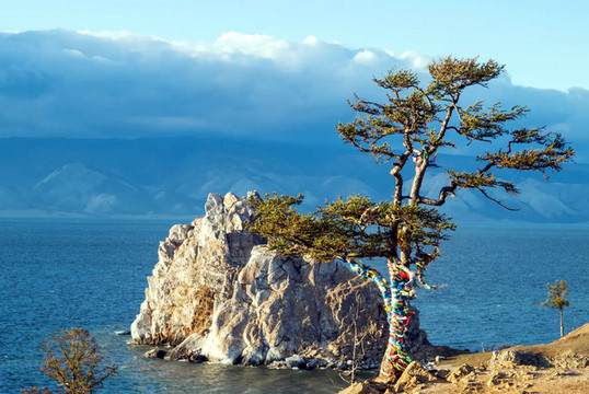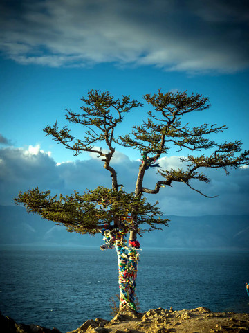 沿着奥利洪岛萨满山山坡向前走,依次会经过萨满树、萨满岩。萨满岩与萨满树也是诸多贝加尔湖风光照和明信片的经典场景。