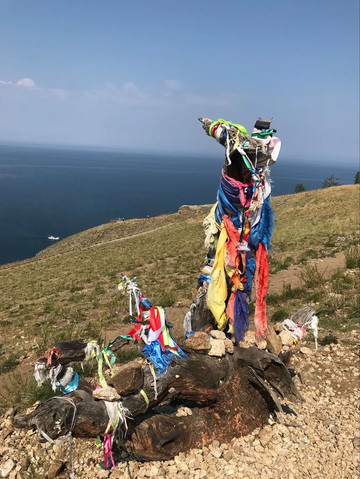 2024年8月中下旬,我参加了北京某旅行社组织的“中蒙俄国际列车+ 蒙古乌兰巴托+俄罗斯贝加尔湖 11 日”旅行。在俄罗斯贝加尔湖的奥利洪岛的胡日尔镇,有很多萨满教的遗迹。 图为萨满教的遗迹之一。