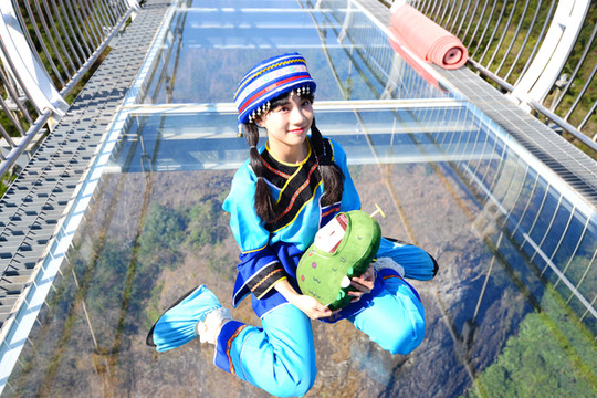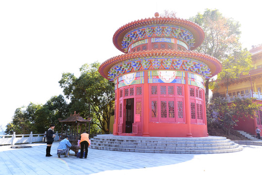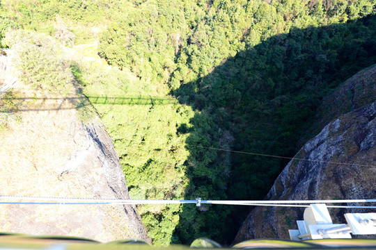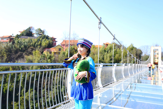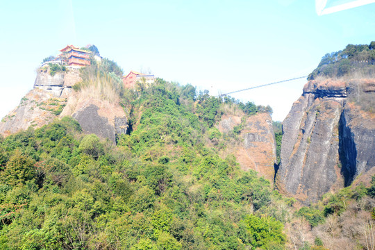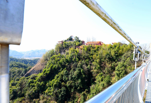 沿着搭建的悬空木道盘旋而上,爬到山顶,山顶上有一座高高的塔,叫百盛塔,塔为7层,高56米,七层八面,层层重檐翘脊,每层有回廊,方便了我们360度赏景。
