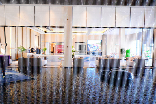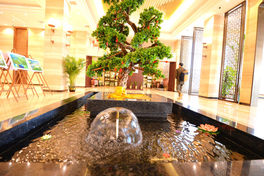生意人讲究财源,水能招财,大堂内设置了一个水景,我觉得倍增灵气。